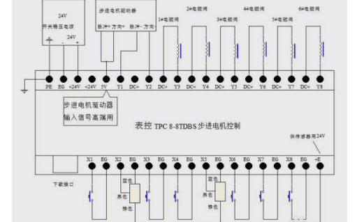 表控輸入輸出接線示意圖步進(jìn)驅(qū)動(dòng)機(jī)中的5v是輸入信號(hào)高端用的。