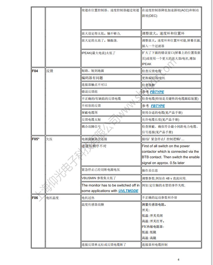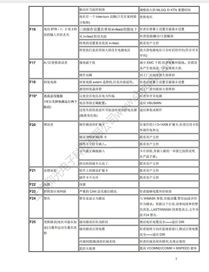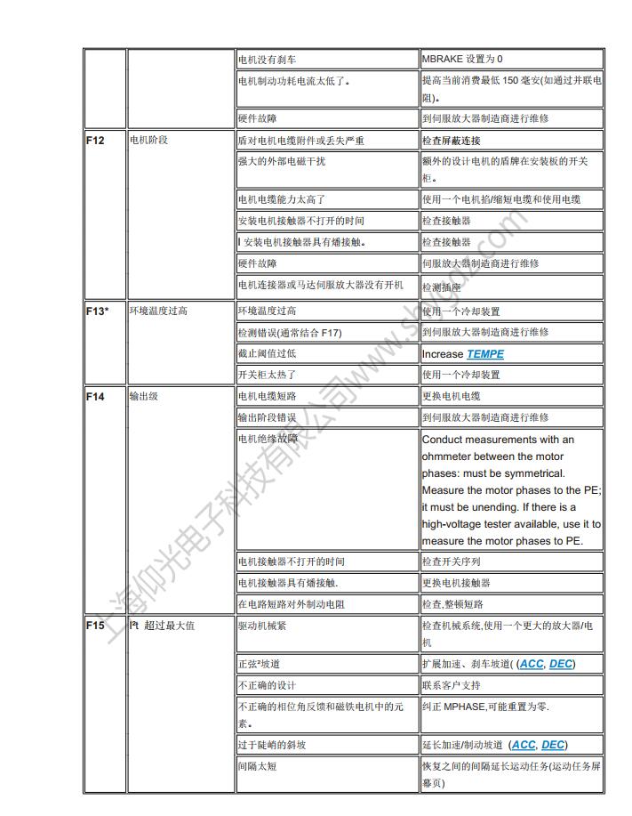 科爾摩根S62000維修,S64001,S67001,S60100,S60300,S60600,S61000,S61400,S30363,S30661,S31061,S30301,S30601,S30101維修、CR03550維修、科爾摩根伺服器常見的故障有:F02、F01、F04、F06、F09、F15、F19、F25、無顯示等;KOLLMORGEN科爾摩根伺服常見故障現象:上電報過電流故障、過電壓、地短路故障、欠電壓、電壓缺相、外部報警、散熱片過熱、外部報警、變頻器內過熱、制動電阻過熱、變頻器過載、DC熔斷器斷路、存儲器異常、鍵盤面板通信異常?茽柲Ω欧寗悠鞴收巷@示警告顯示及解決辦法一覽表: