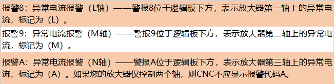 步驟3:報警8,9和A都是同樣的問題。但是,不同的警報識別警報存在于哪個放大器軸上。