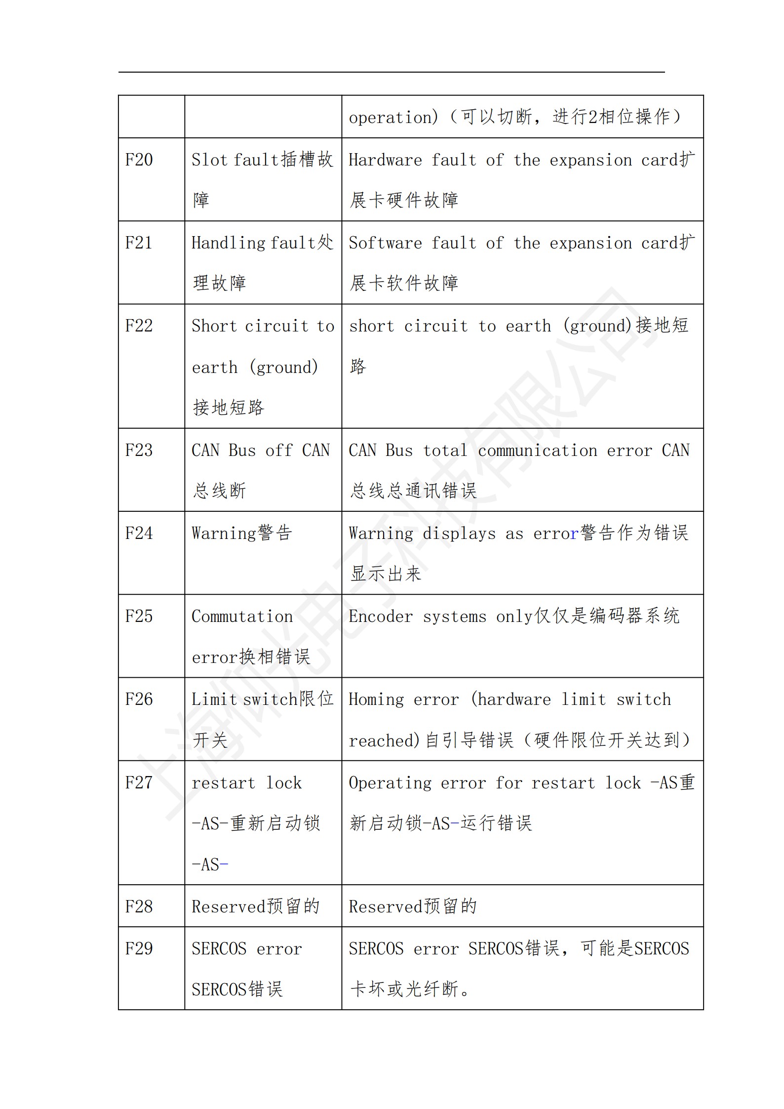 科爾摩根S700系列驅動器操作使用說明書,科爾摩根S700系列驅動器報警故障代碼解釋: