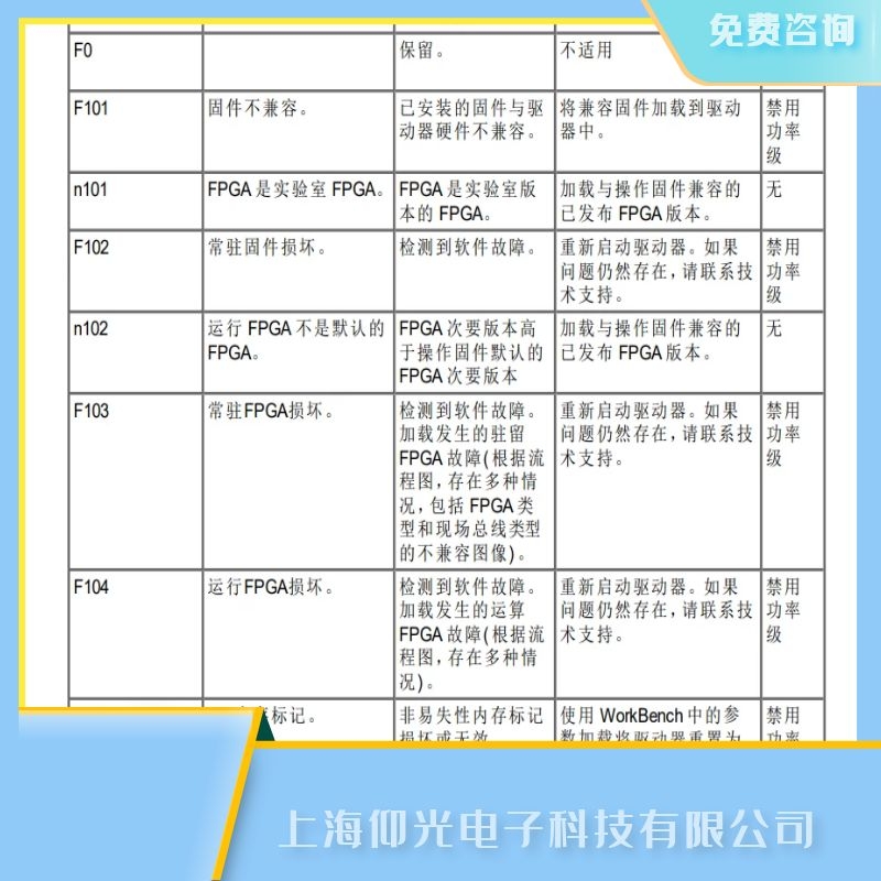 補救方法:加載發(fā)生的駐留FPGA 故障( 根據(jù)流程圖,存在多種情況,包括 FPGA 類型和現(xiàn)場總線類型的不兼容圖像) 。重新啟動驅動器。如果問題仍然存在請聯(lián)系技術支持。